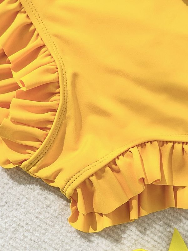 Kids Baby Girls Casual Vacation Cute Tiny Flower Print Sleeveless Off Shoulder One Piece Swimwear quantity