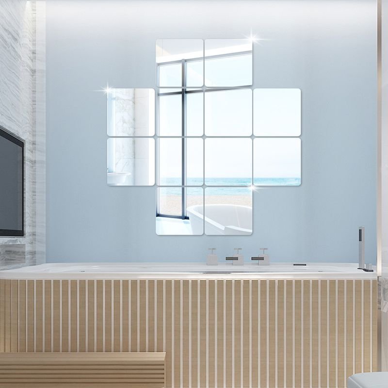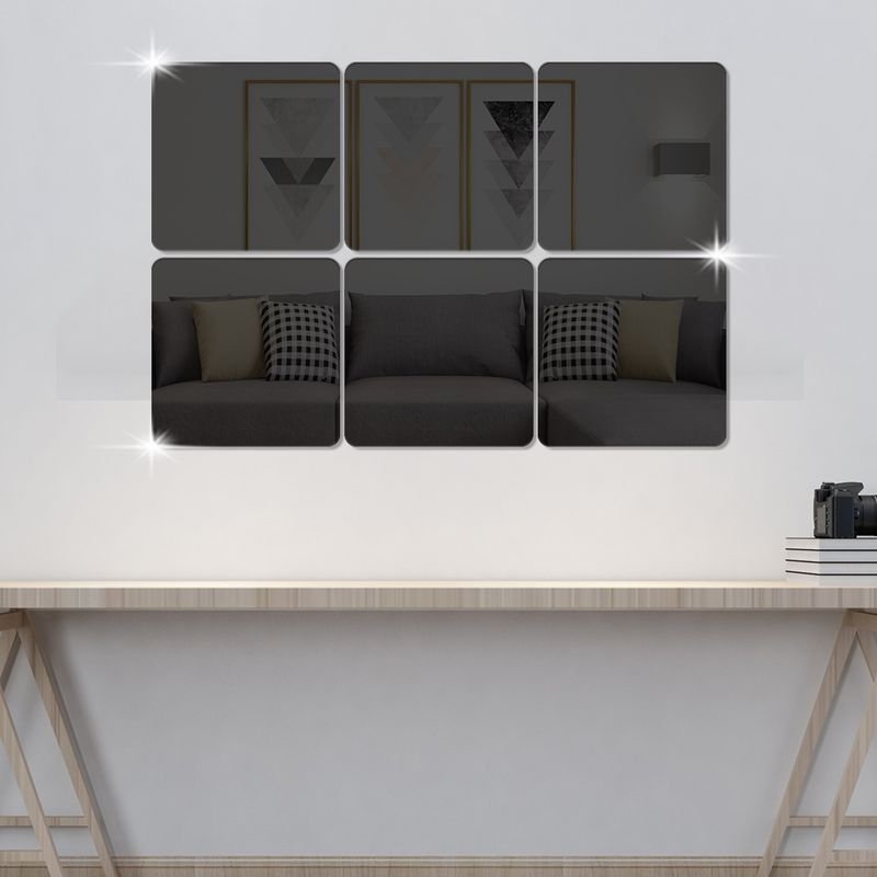 Simple Creative Thick Acrylic 6 Pieces Square Mirror Wall Sticker Decoration